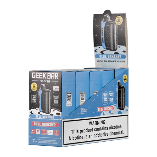 - Flavor: The Blue Rancher Geek Bar Pulse X 25000 is your portal to the past. Relish the delicious essence of blueberry and blue razz hard cconfections in this throwback vape that perfectly balances sweet and tart notes.